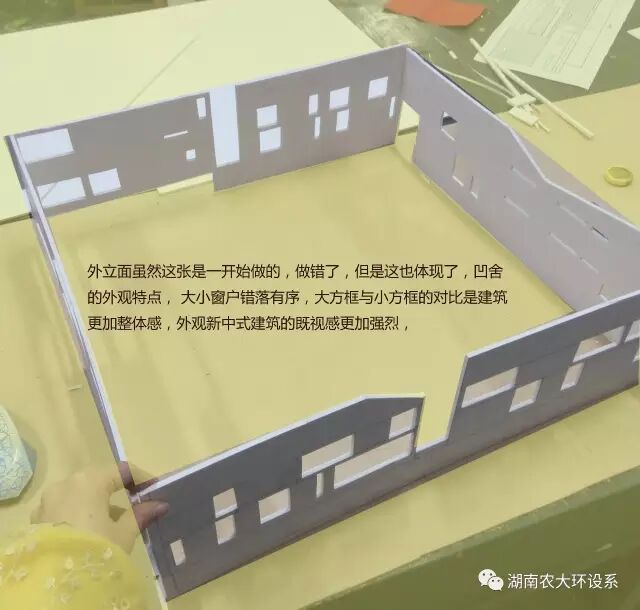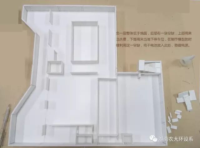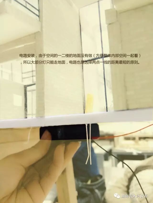 设计很重要,将理论转化为实际更加重要。我采取分部式的制作方法,在这个过程中遇到了很多问题:裁切的板子与设计图纸尺寸不符、玻璃粘贴不牢固等问题。但我静下心来,一步一步解决,终于完成了模型制作。