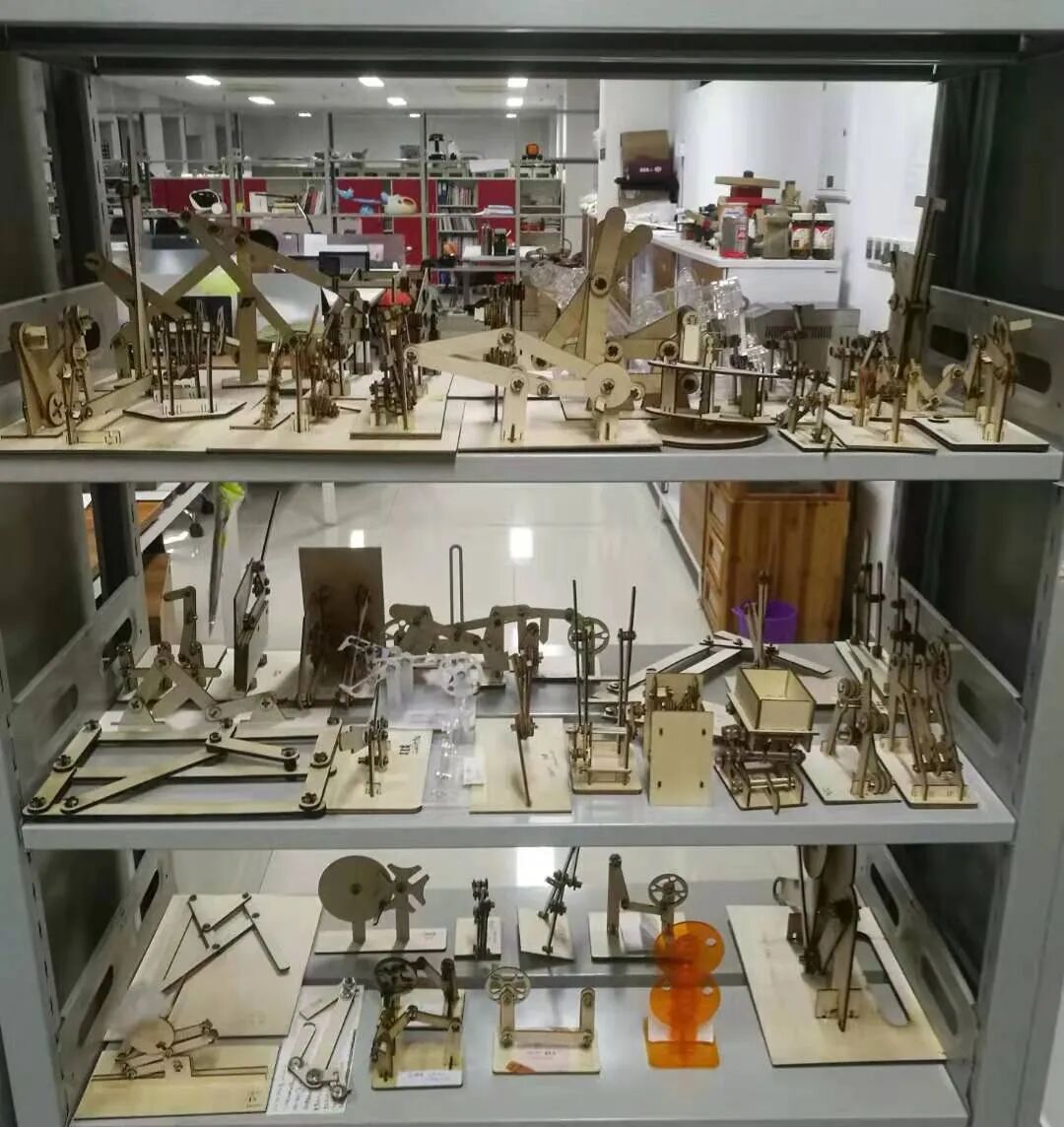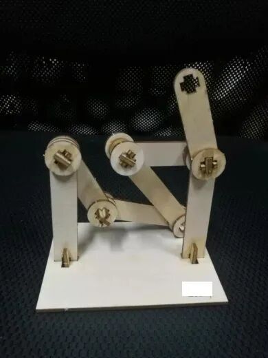 由于使用的是板材,除了受力部件(如支架)和需要刚度的构件(如细长杆),其实很多都可以做成镂空的,激光雕刻机可以切出任何花纹。镂空部件可以增加机构的通透性,有助于观察内部结构,增加机械机构的观赏性。下一个模型做齿轮可以加点花样在齿轮的轮辐上了。
