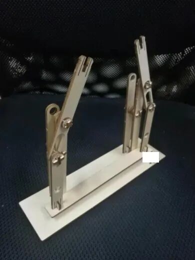 有些人会不自觉地把机构做得尽可能像个机构简图,典型特征就是杆很细、铰链很小。这种做法很容易导致刚度不足(杆细)和运动误差(铰链小,接触面积小)。所以铰链、滑块这些运动副可以做得大一些——不是把模型整体放大,而是与构件尺寸相比可以做得比例稍大一些、“壮实”一些,只要不影响功能就行了。市场上销售的一些木板拼装玩具,它们的铰链轴要么是牙签(如UGEARS),要么是细金属棒。这么细的轴要想保证运动质量就只能靠提高制作精度了。我们要学会用设计手段来解决精度不足的问题。杆也可以做粗一些,做成有面积、有形状,完全不像简图中一条细线那样的杆——不是说把构件整体尺寸做大,比如一根杆,在保持两个铰链间距离的前提下可以做得宽一些,形状有些变化(如果你愿意做成蛇形也可以)。运动副和构件尺寸大了可以增加接触面积,降低运动误差,提高机构稳定性。但是这么做的前提是不能影响功能、不能带来新的问题,比如跟别的构件干涉了。其实机械机构给设计师留出的发挥空间还是挺大的。